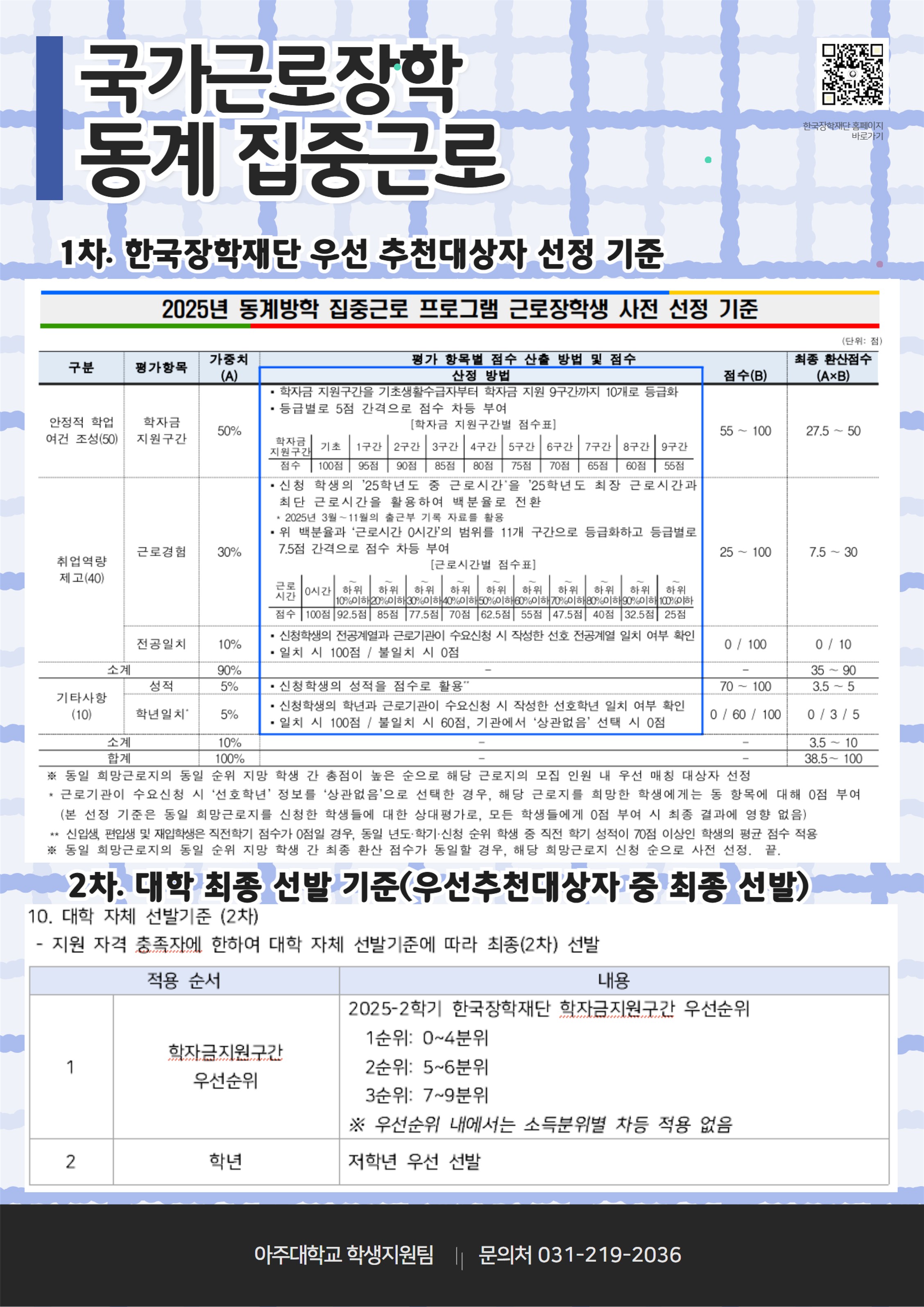 [장학] [학생지원팀] 2025 동계방학 집중근로 프로그램 희망근로지 신청 안내