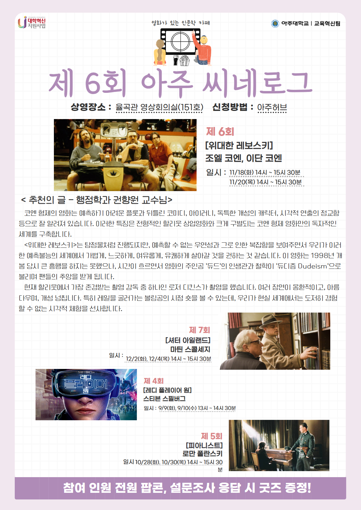 2025ํ•™๋…„๋„ ์ œ 6ํšŒ ์•„์ฃผ ์”จ๋„ค๋กœ๊ทธ ๋ชจ์ง‘์ด ์‹œ์ž‘๋˜์—ˆ์Šต๋‹ˆ๋‹ค.