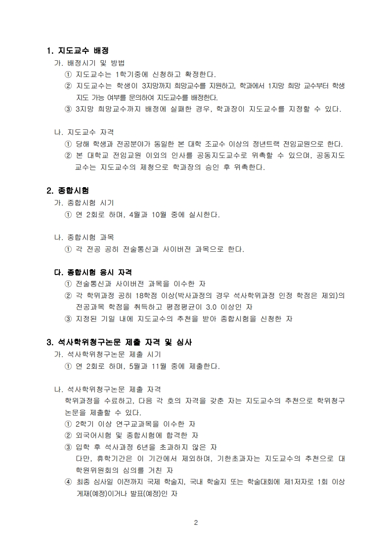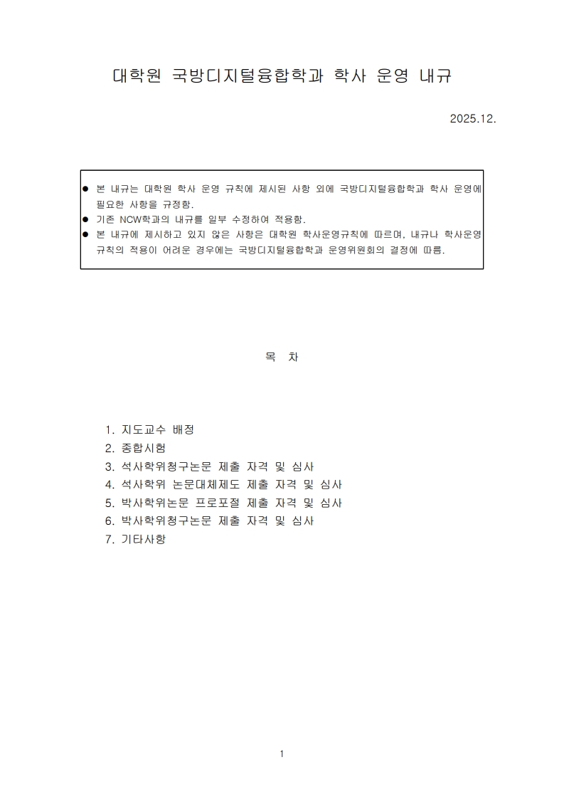 대학원 국방디지털융합학과 학사 운영 내규를 안내하오니 참고 바랍니다.